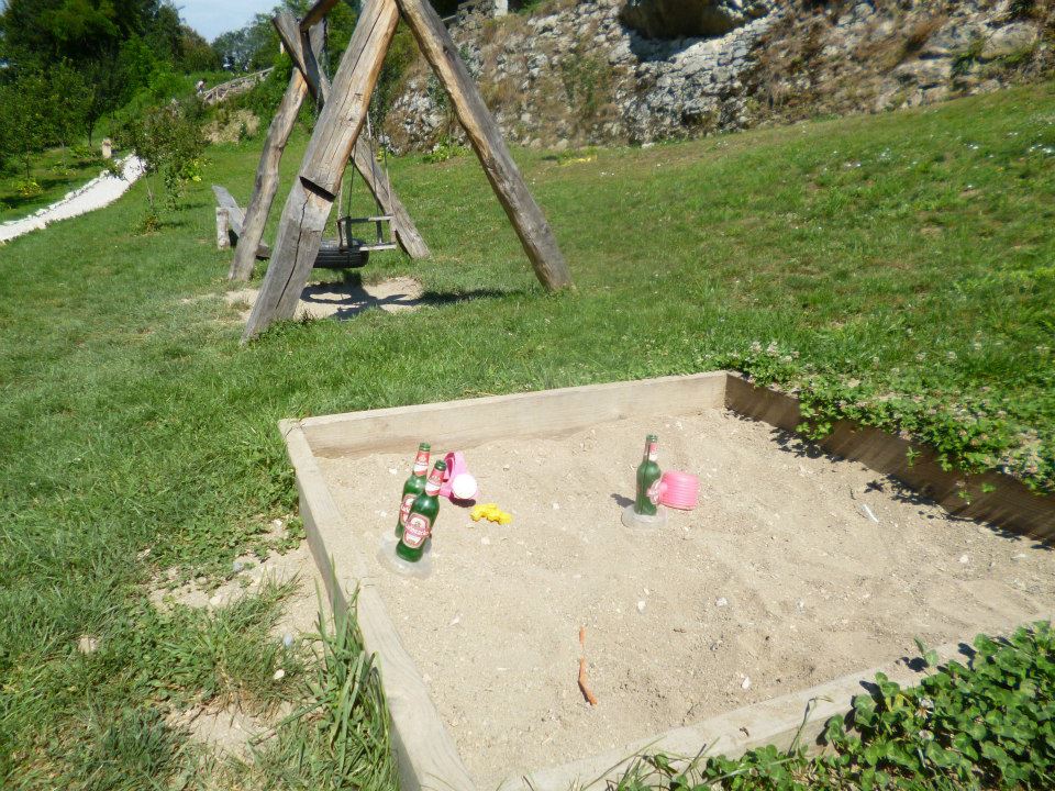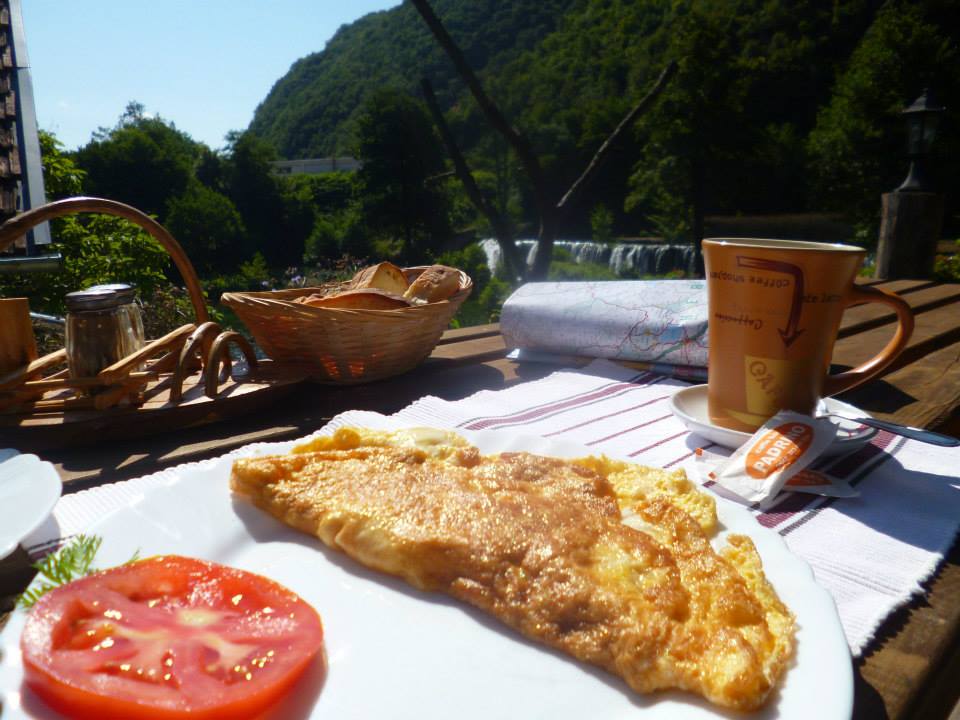 Continuing my journey south from Bihać, I found myself in the picturesque village of Kulen Vakuf, nestled along the Una River. I stopped at a local pub that doubled as a fish farm, a common sight in this region known for its aquaculture. It was early on in the day – so I opted for a late breakfast. A lovely spot to stop although the plastic beer bottles were an unusual choice of toy to put in the children’s sand pit.