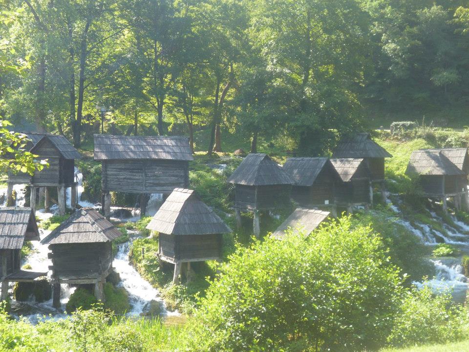 After stopping to buy a sheep?skin rug for my numbing bum, I rode on toward Jajce, a town layered with history and natural beauty. I passed lakes where local youngsters were taking the opportunity of cooling themselves off. Whilst in Jajce I took the opportunity of visiting the medieval watermills (Mlinovi). Just one cluster of mills remains today, located on the natural cascade where the water flows between the two Pliva Lakes. Apparently local farmers used the mills to grind wheat into flour right up until the Second World War.