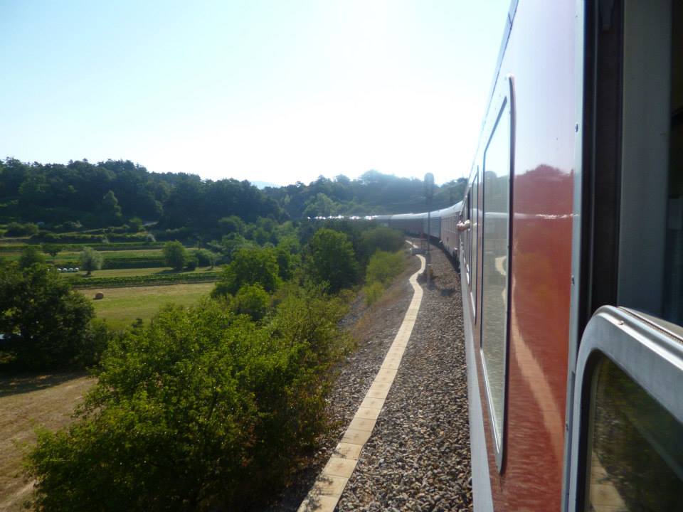 The journey was more than just transportation; it was an experience—a moving snapshot of Europe’s landscapes and cultures. Standing in the corridor, we could see our vehicles on the trailer behind, a comforting sight as the train wound its way through European valleys