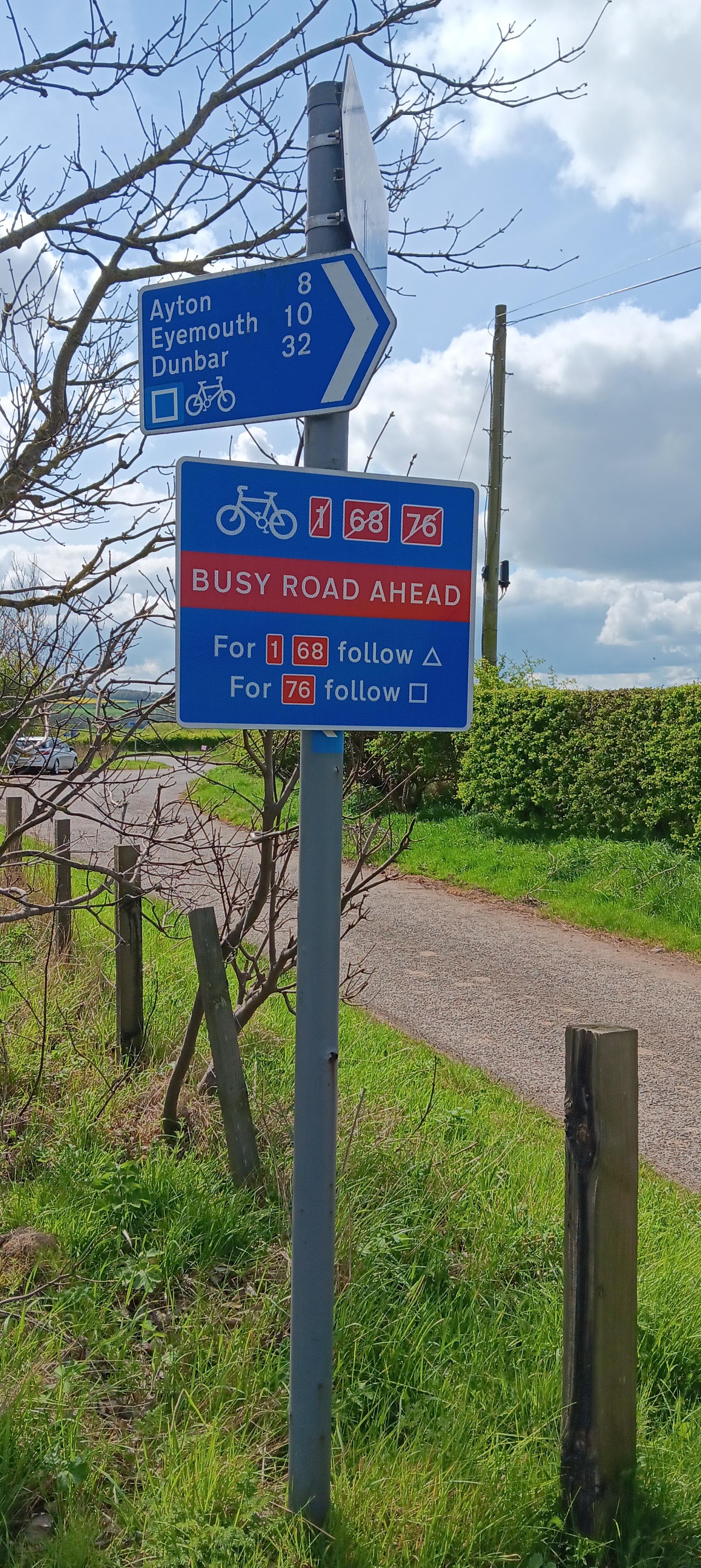 A late start after travelling up by train from Manchester meant a late finish, but it was a superb first day. I followed Sustrans Route 76 through the countryside, stopping for a break at Eyemouth, and finished with a swoop downhill into Dunbar for fish and chips, then on to my bed for the night in East Linton.