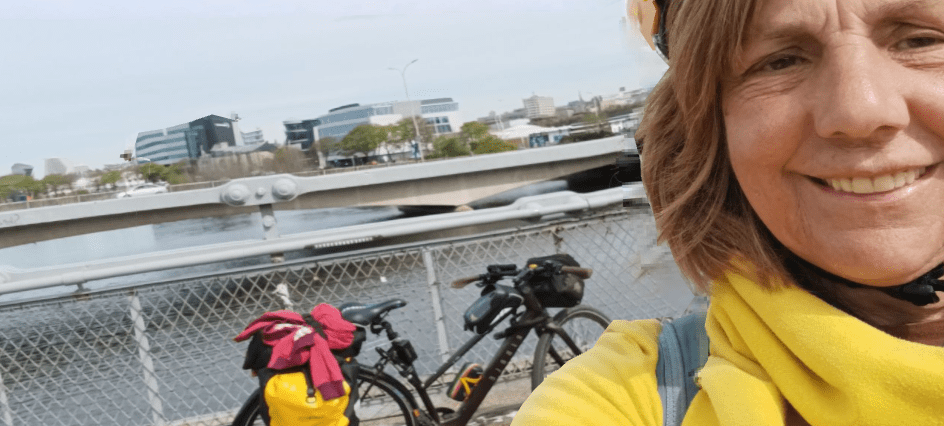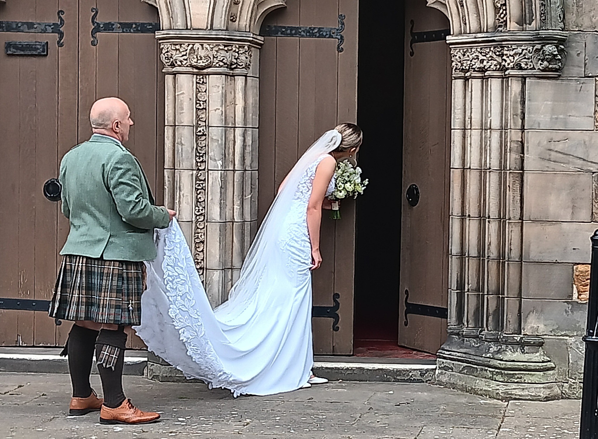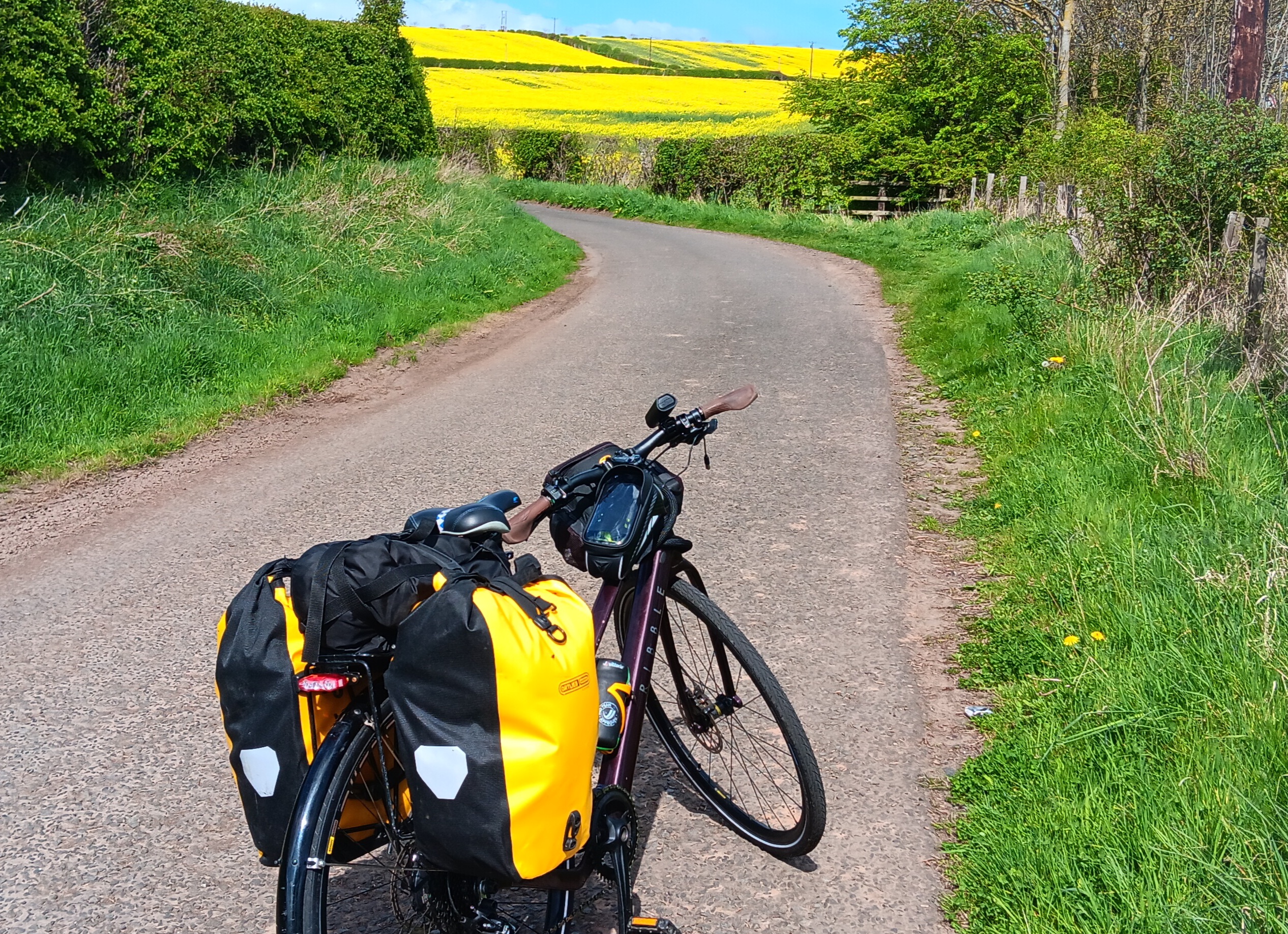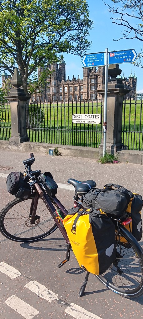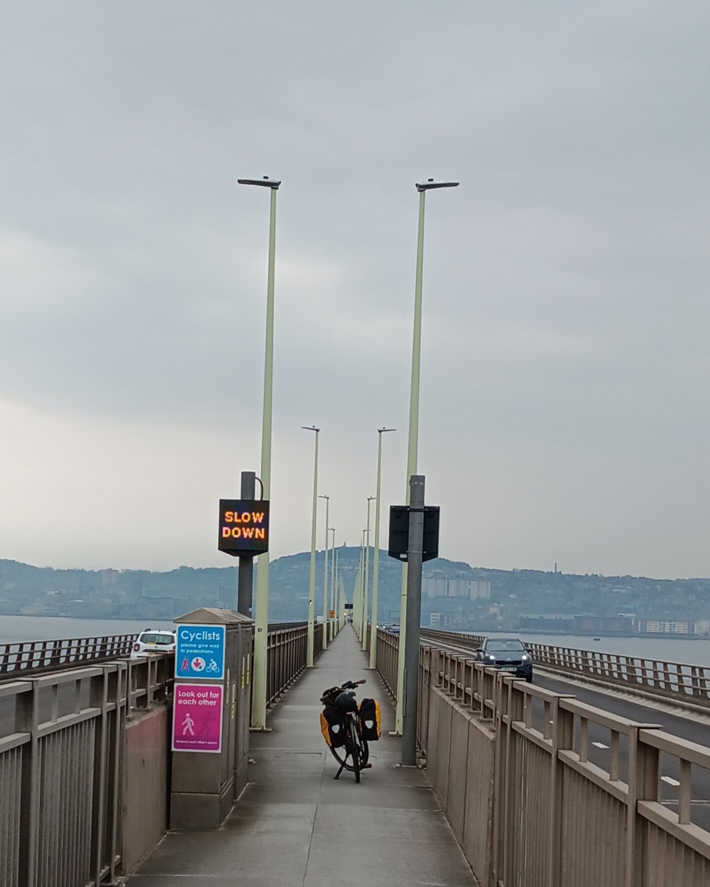I left Bankhead Farm taking the ‘old road’ along farm tracks and into St Andrews, where I saw a bride arriving at church in a Land Rover to the sound of bagpipes—a very Scottish moment! I then rode past the Home of Golf and crossed the Tay Bridge into Dundee to stay with Bridget, my third Warmshowers host of the trip.