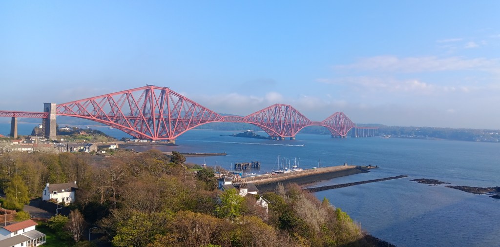 A lovely evening with my Warmshowers host, Keith, swapping Type 2 and Type 3 adventure tales (the kind you only enjoy in hindsight). A quiet ride through countryside and coastal tracks led into Edinburgh, then came the challenge of navigating my way out again, before finally crossing the car-free Forth Road Bridge—fantastic views and a lasting memory.