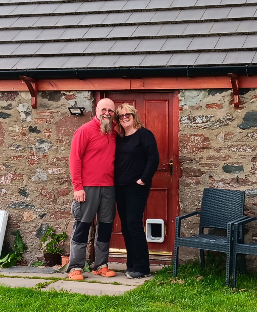Now back in Forfar, Debbie and Iain have found their forever home in the foothills of the Cairngorms. I arrived perfectly in time for a roast dinner and an evening of reminiscing. After a peaceful night’s sleep, Iain showed me their small woodland, which he’s protecting with deer fencing to allow new saplings to grow.