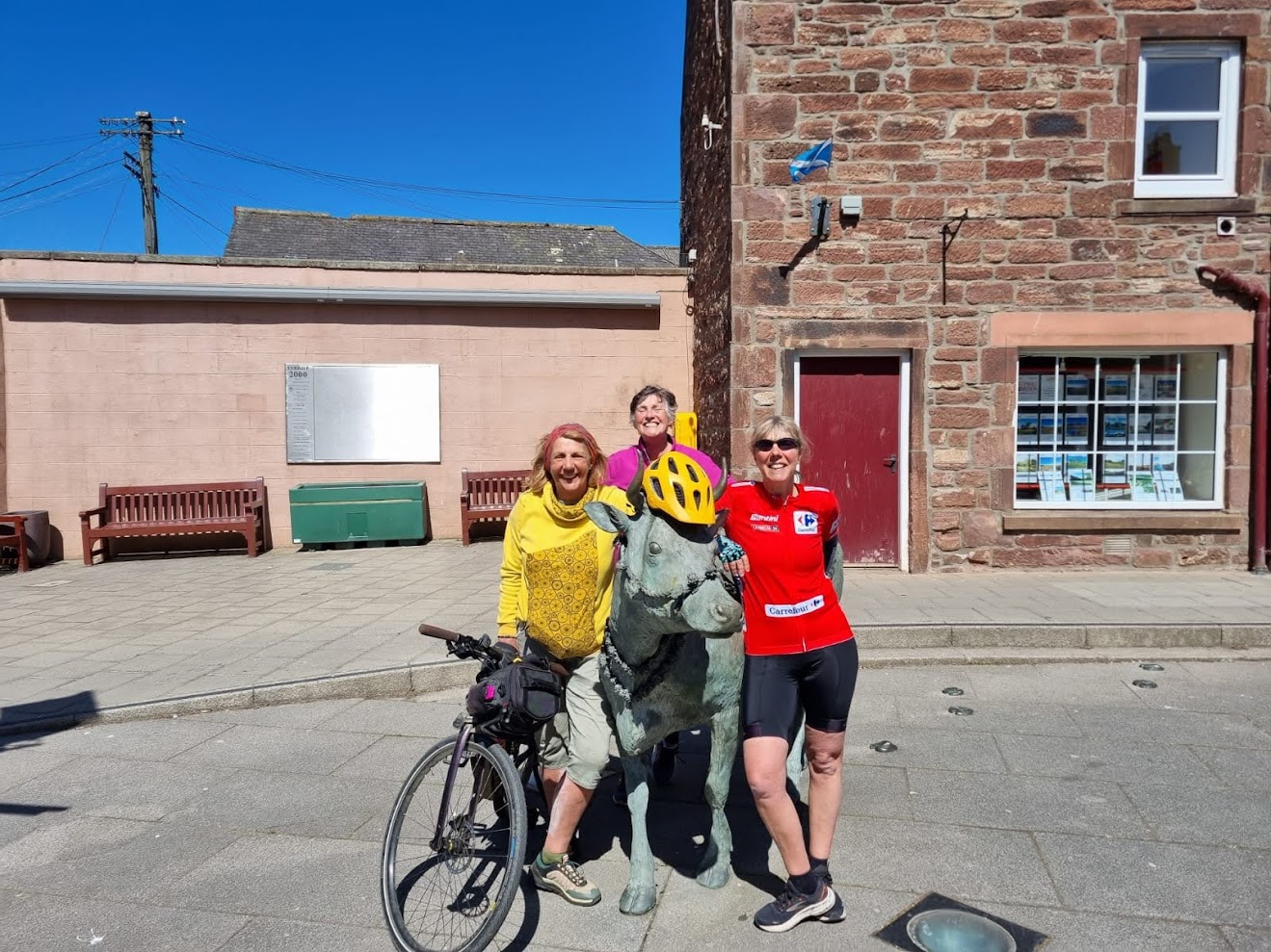 The café was not 200 metres from the Turra Coo, so I walked my bicycle there and turned round expecting to see Liz and Dawn following me. What I did see was Dawn holding on to two bicycles and Liz hobbling back from the direction of Turra Coo square. What the ……?
