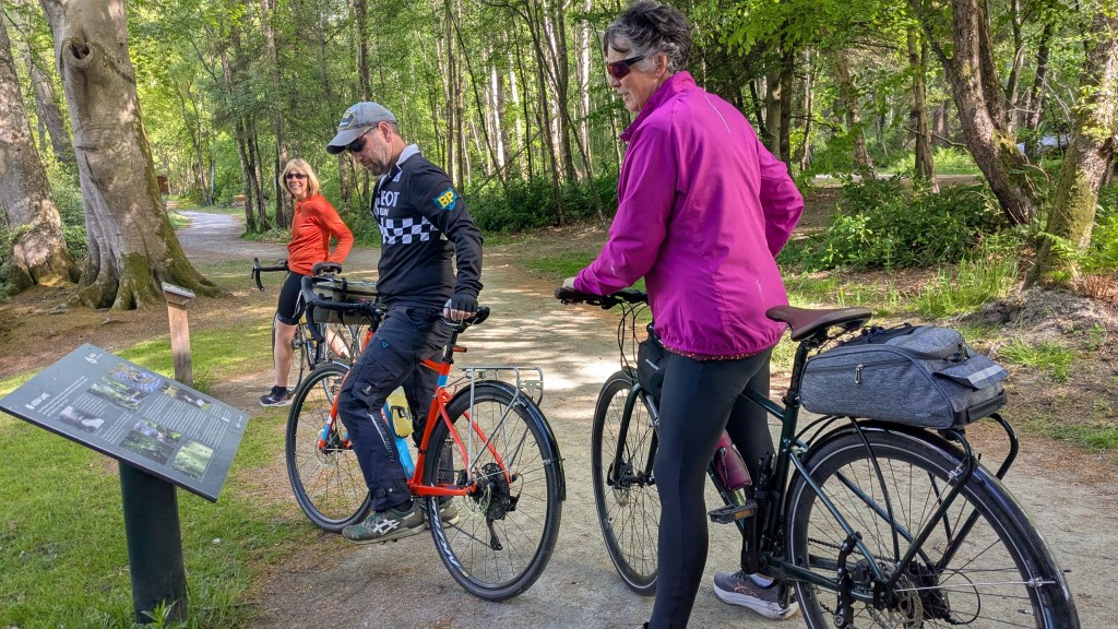 After a demanding first day, I proposed a gentler start—an hour or so when the four of us could explore Aden Country Park before the Three Spokeys set off on the 30-mile ride to the coast. The Blokey, Paul would break camp and drive Trixie ahead to set up at the next site, just as he had the day before. It was a good rhythm.