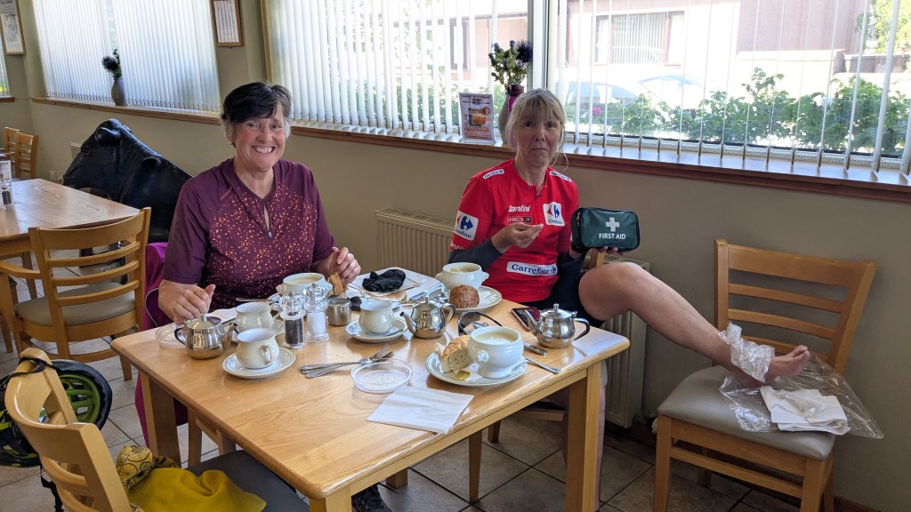 After lunch, cullen skink and a proper pot of tea (when in Turriff… Liz made her decision. She wasn’t calling in the broom wagon. She’d ride on. No arguing with Liz once she’s made up her mind, so we got ready to leave.