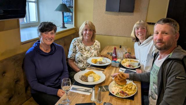 Dinner at The Market Arms was a proper Scottish affair. There was haggis, neeps and tatties dressed in a rich whisky sauce, alongside a cheeseburger and a hearty lasagna—something for every taste. Liz went full retro for dessert with a Knickerbocker Glory, which she fiercely guarded. Sharing was not on the menu.