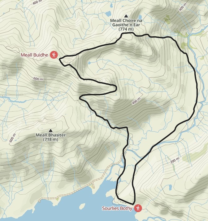 Other bits of my memory are a bit hazy, but I’ve logged that I did climb Meall Bhuidhe on this trip. It seems to make sense that after the adventures of the night before, I could have stayed at Sourlies bothy another night and bagged this Munro on a day walk.
