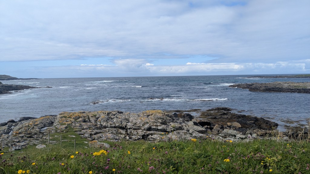 Knowing I was likely to be grounded the next day, I cycled into Castlebay. Despite it being a Sunday, I was pleasantly surprised to find the supermarket, a café, and a pub all open, highlighting the contrast between the largely Catholic south and the more strictly observed Presbyterian traditions of the north. I availed myself of all three amenities before returning to the campsite, where I discovered I had acquired a close companion.