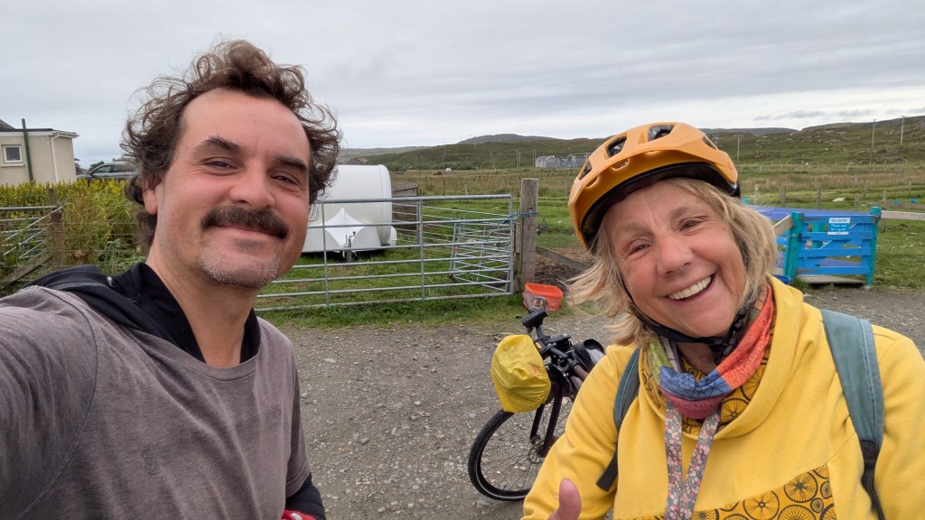 A couple of miles later, with the battery flashing red, I rolled into Horgabost campsite. There was, of course, no shop or café. Still, I’d caught on by now and had stocked up at the Services earlier in the day, so I was glad to pitch the tent, have my tea, and then go for a stroll along the stunning beach. It had been a tough 50 miles with almost 3,000 ft of ascent.