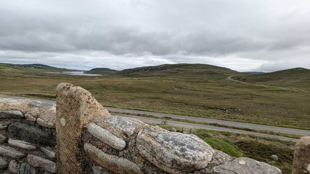 The Pairc Raiders monument marks the 1887 land raid by crofters on the Pairc deer forest, part of wider struggles over land rights in the Hebrides that helped shape later reforms to Highland land laws. I’d passed a similar memorial cairn the previous day on Great Bernera. Further down the road I stopped at the Bonnie Prince Charlie monument, marking the place where he landed after his defeat at Culloden, before crossing “over the sea to Skye.” I wondered whether he’d had any better luck finding an open café on his travels.